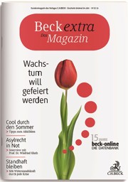 Schwerpunktthema dieser Ausgabe ist das 15-jährige Bestehen der Datenbank beck-online. Das Magazin stellt die erfolgreiche Datenbank sowie interessante Köpfe dahinter vor. Außerdem beschäftigt sich die Ausgabe mit der Asylrechtsreform und gibt Tipps für den Sommer sowie für eine persönliche Stehaufmännchen-Mentalität.