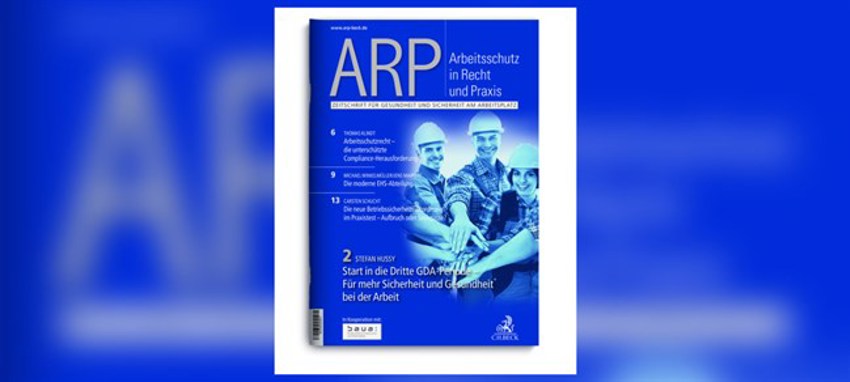 Die ARP hat es sich zur Aufgabe gemacht, monatlich einen kompakten Überblick über aktuelle Themen, Diskussionen und Neuerungen im gesamten Bereich des Arbeitsschutzes und der Arbeitssicherheit zu geben. Dabei setzt sie mit jeder Ausgabe Themenschwerpunkte wie etwa Compliance, mobiles Arbeiten oder psychische Belastungen.